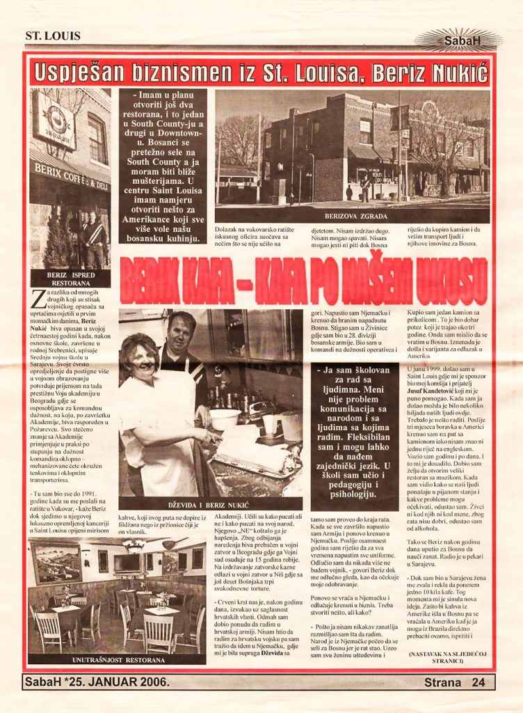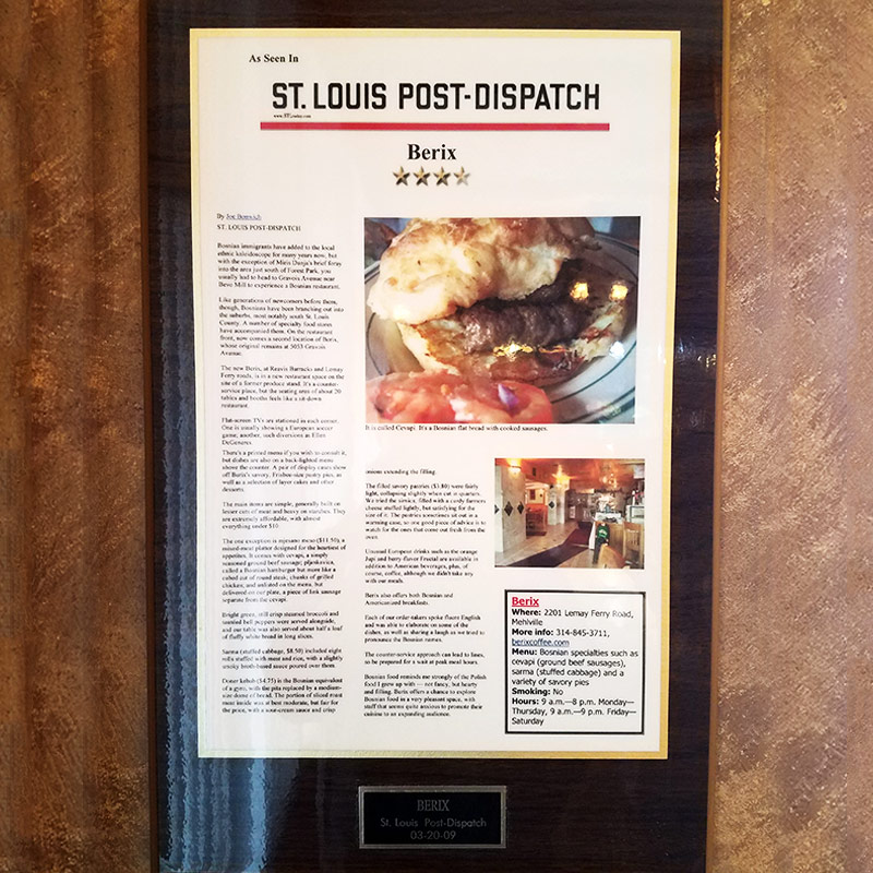 Here are some stories, articles and awards that prove our long tradition, successes and dedication to serve delicious Bosnian meals and traditional coffee here in St. Louis.