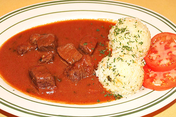 Beef and vegetable stew, served with choice of rice or mashed potatoes