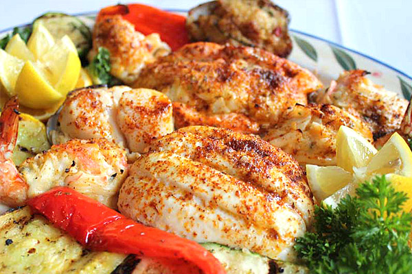 5 pieces grilled shrimp with Tilapia. Served with your choice of side